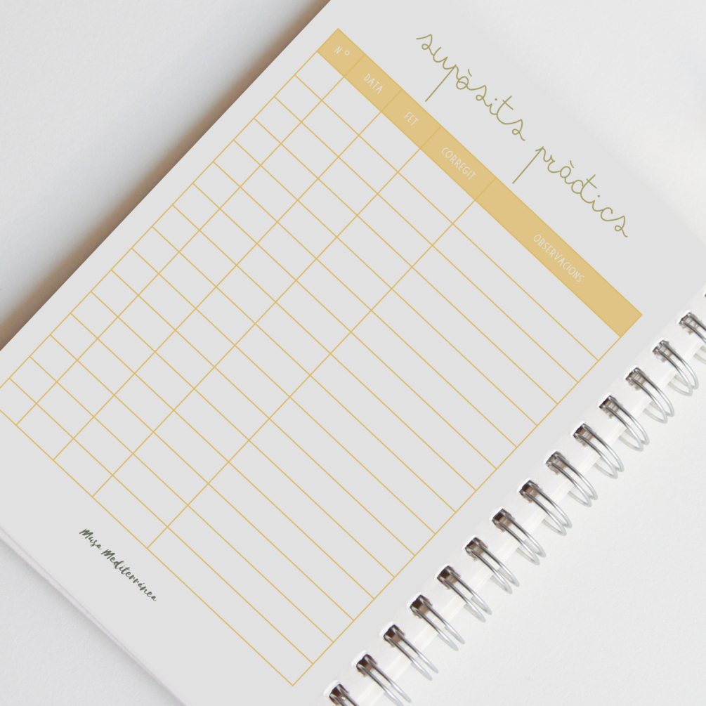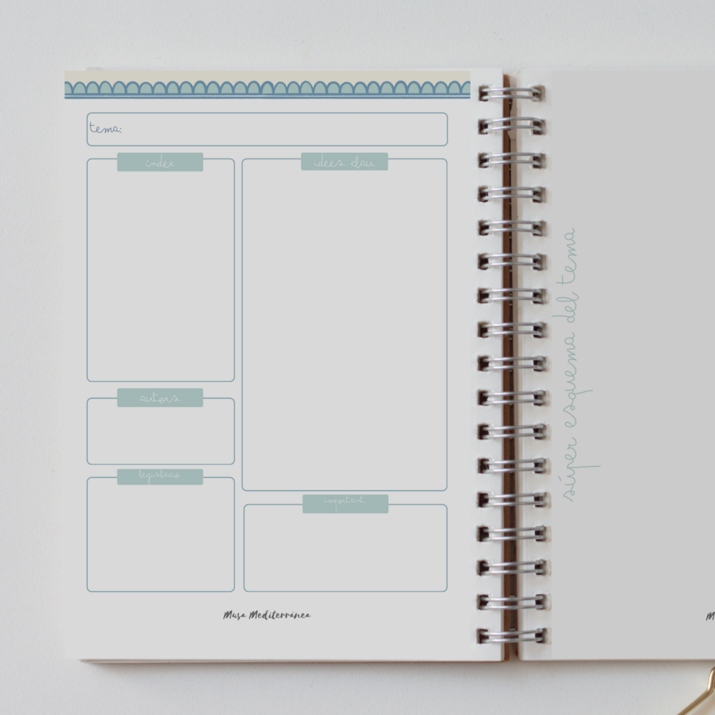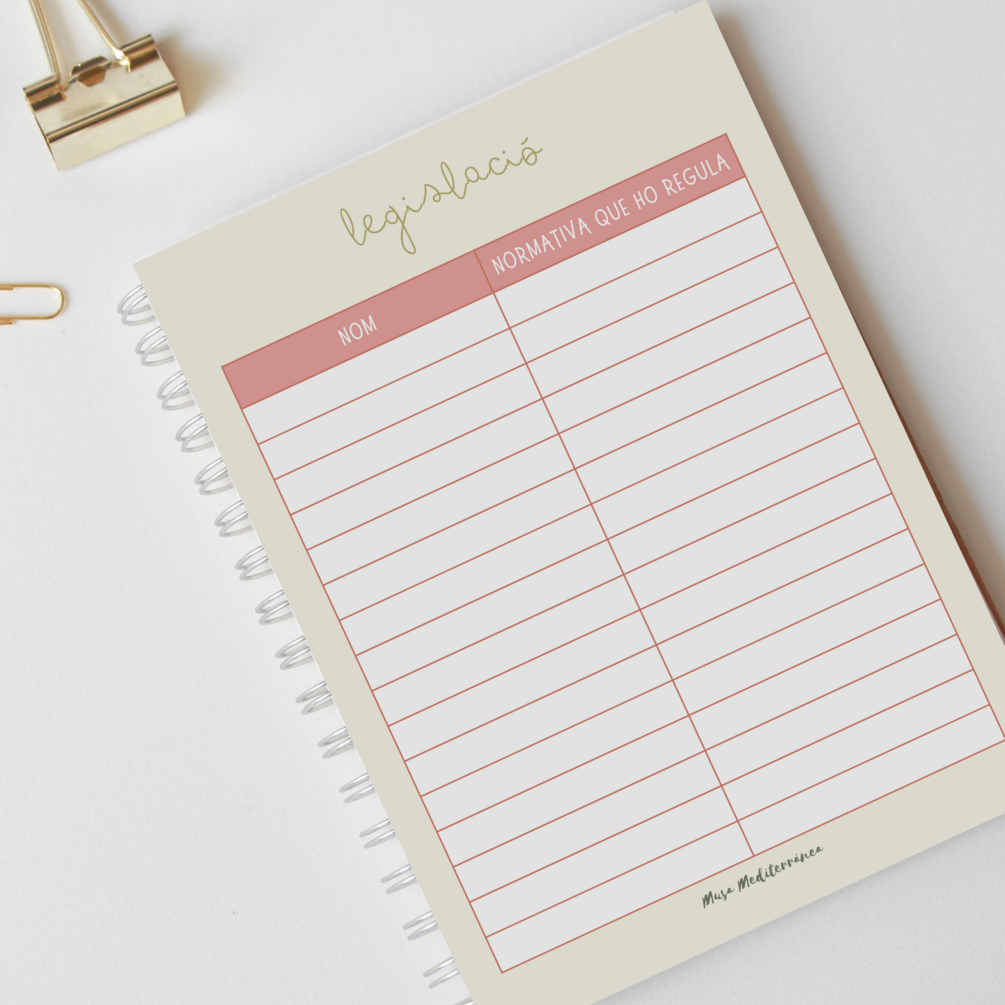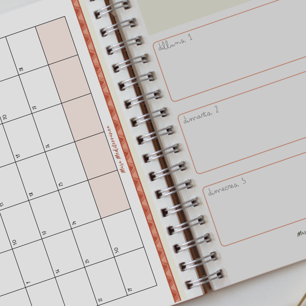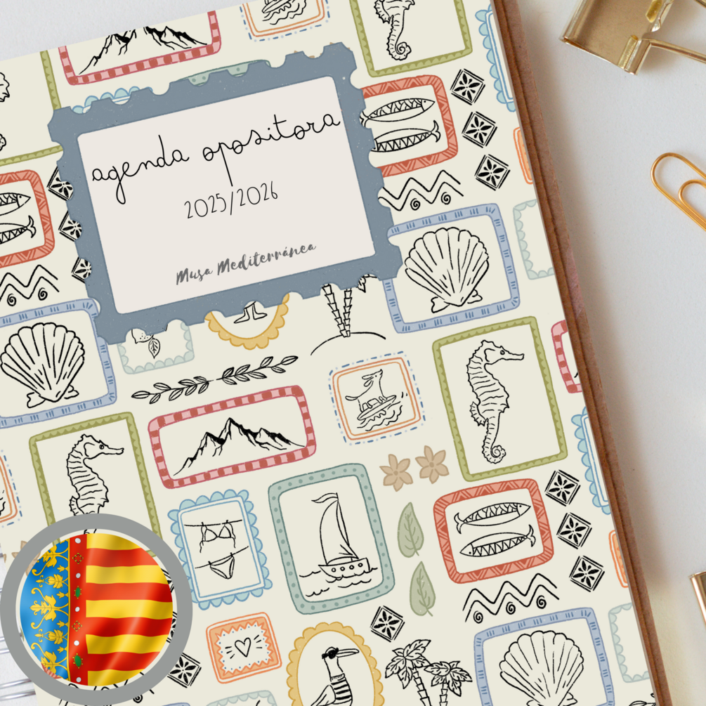 Agenda opositora que comença el mes de setembre de 2025 i finalitza a setembre de 2026. Dissenyada en colors mediterranis, seguint la línia característica de @musamediterranea.