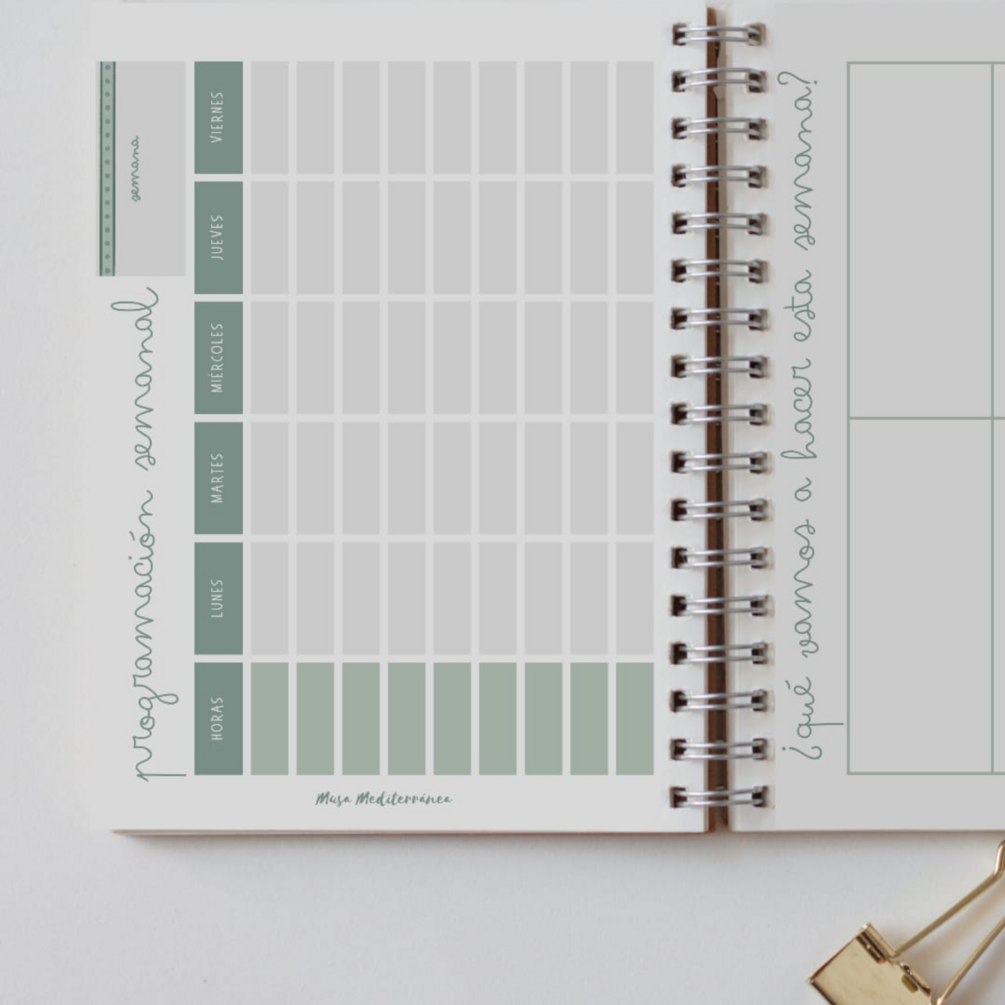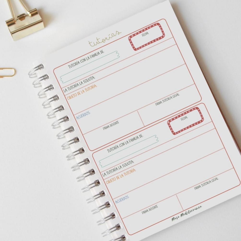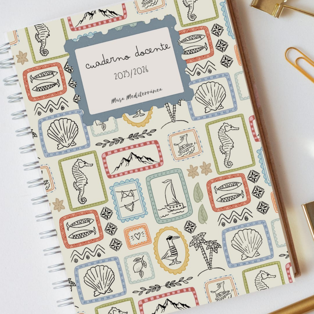Cuaderno Docente que empieza en el mes de septiembre de 2025 y finaliza en junio de 2026. Diseñada a todo color, siguiendo la línea característica de @musamediterranea.
